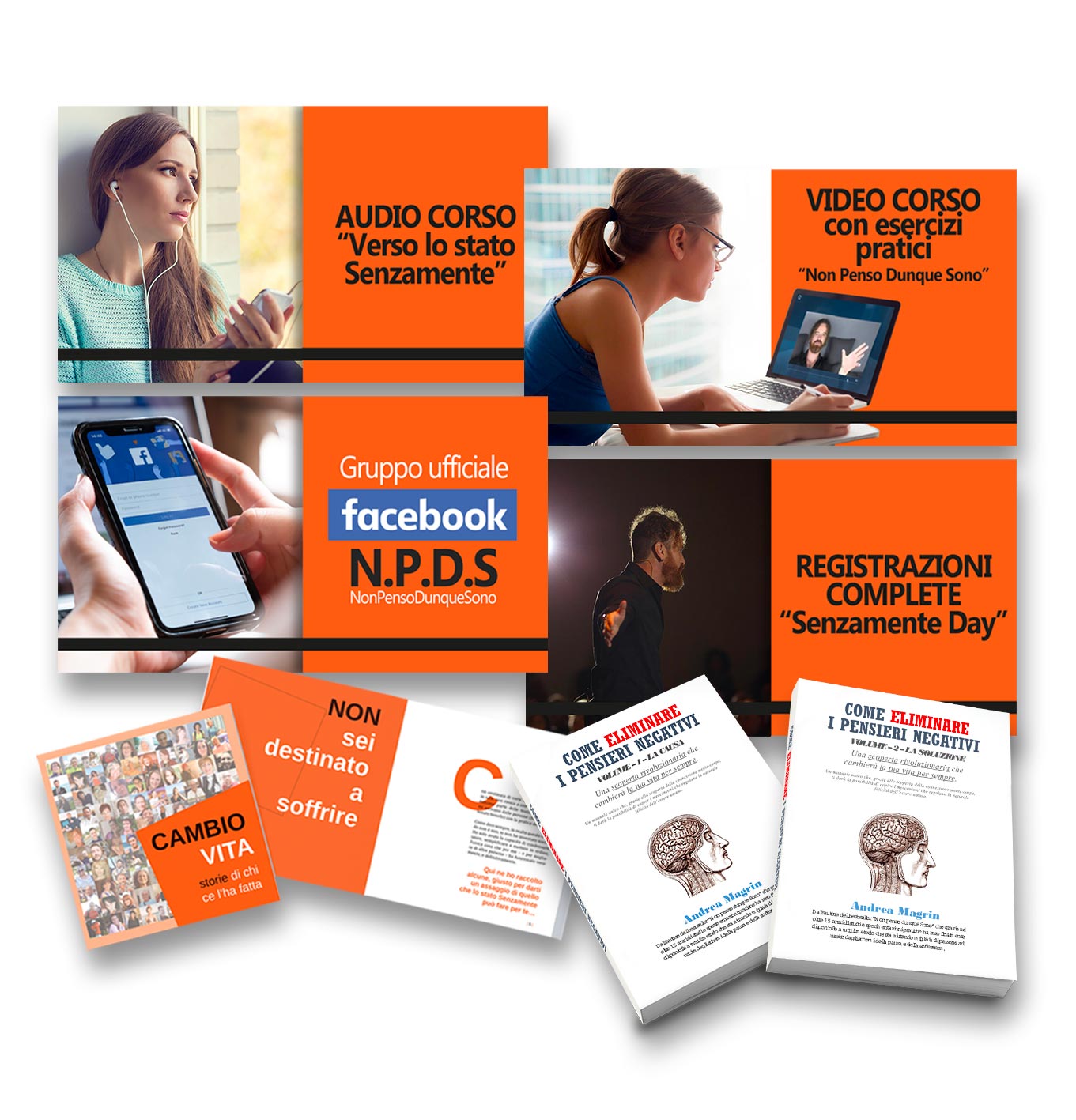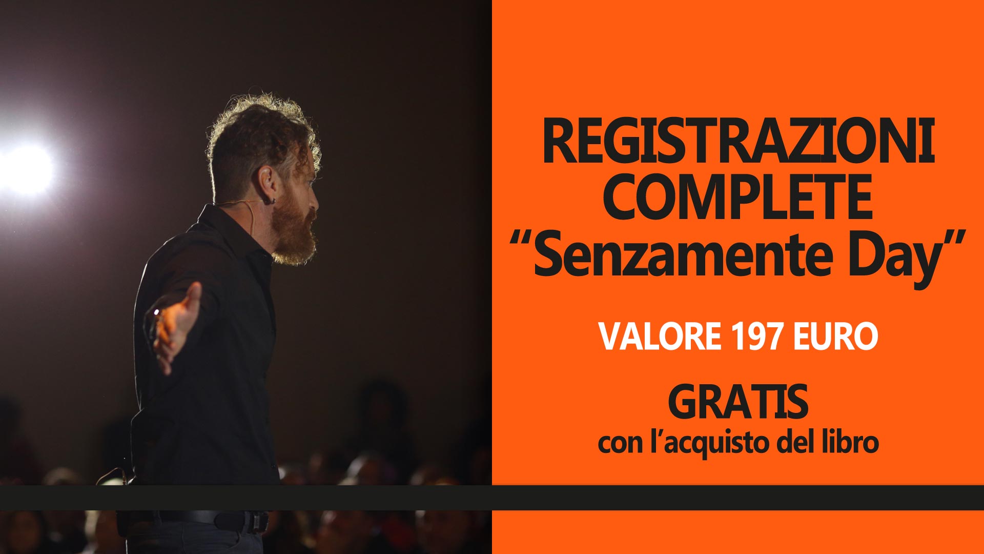 Registrazioni complete “Senzamente Day” – l’evento dove oltre 500 persone live hanno potuto assaporare lo stato Senzamente condiviso e toccare con mano la potenza del Metodo Magrin (Valore 197 euro – Gratis con l’acquisto di “Non penso dunque sono”);